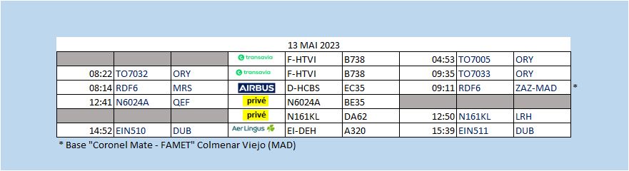 Le 13 mai, départ de MRS, escales à PGF puis ZAZ avant d'arriver au QG de la FAMET à Madrid.